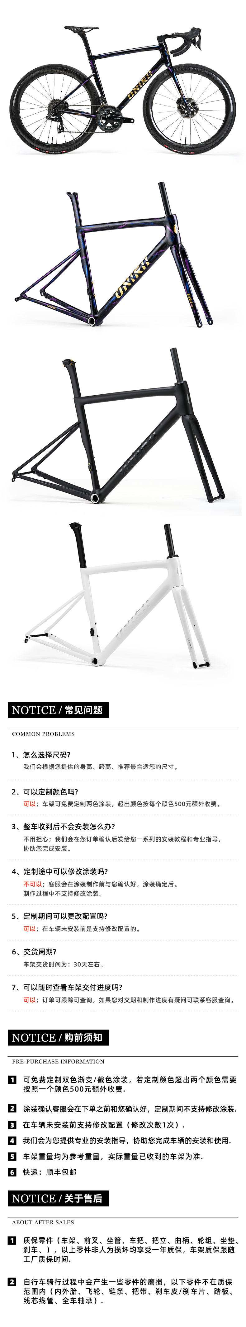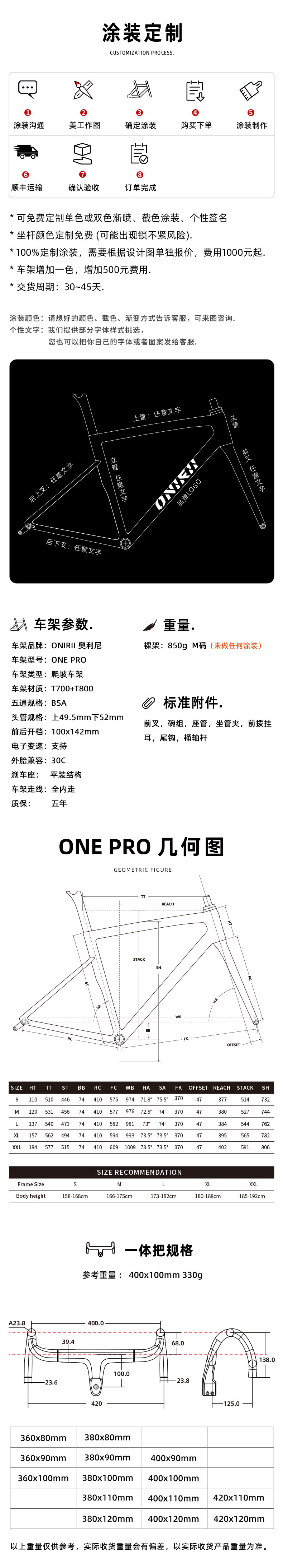 ONE数字一,代表着ONIRII奥利尼起步,所以我们好的产品都拿了出来。10多年的开发,制造经验结合配合度高的供应链,我们得以开发和生产出高品质,高性价比国产自行车产品。ONE作为ONIRII奥利尼一个重要的系列产品主打高端轻量的理念,ONE系列产品包括车架,轮组,车把等配件。ONE数字一,我们以此作为开始但不止步于此。未来我们最好最轻的产品都将以此作为型号名。