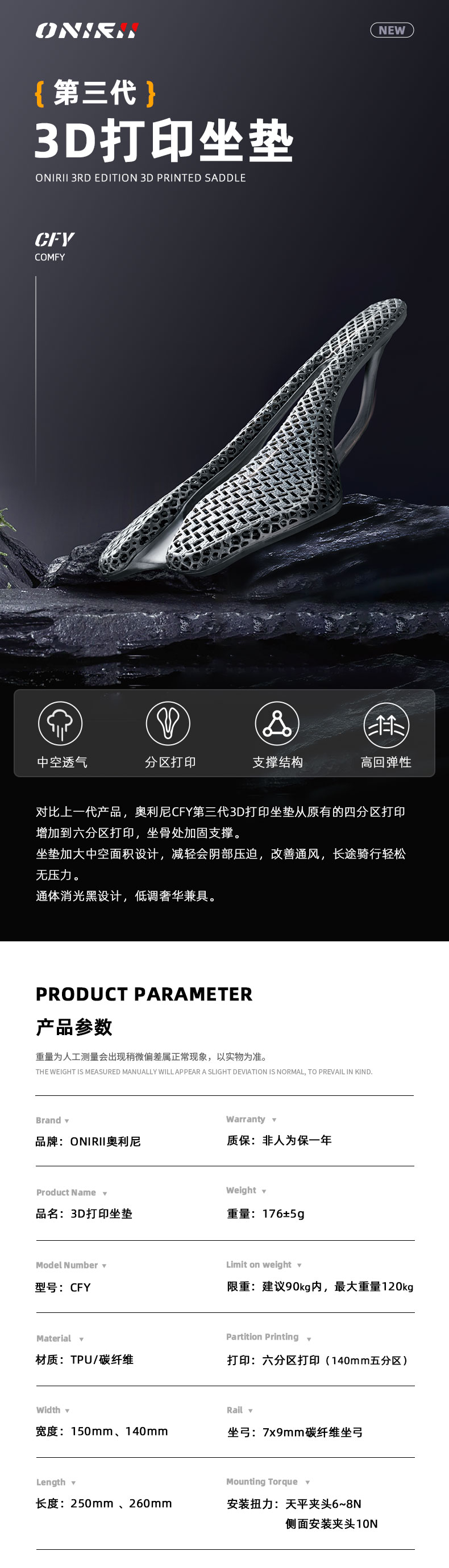 2、若出现磕碰、摔车、超出安装扭力、超出坐垫正常使用范围等情况不享受质保。