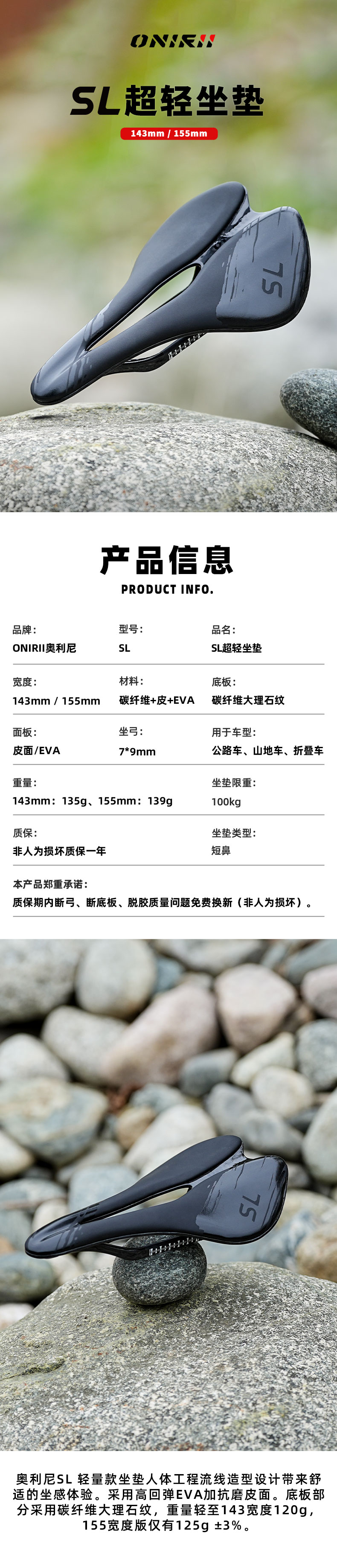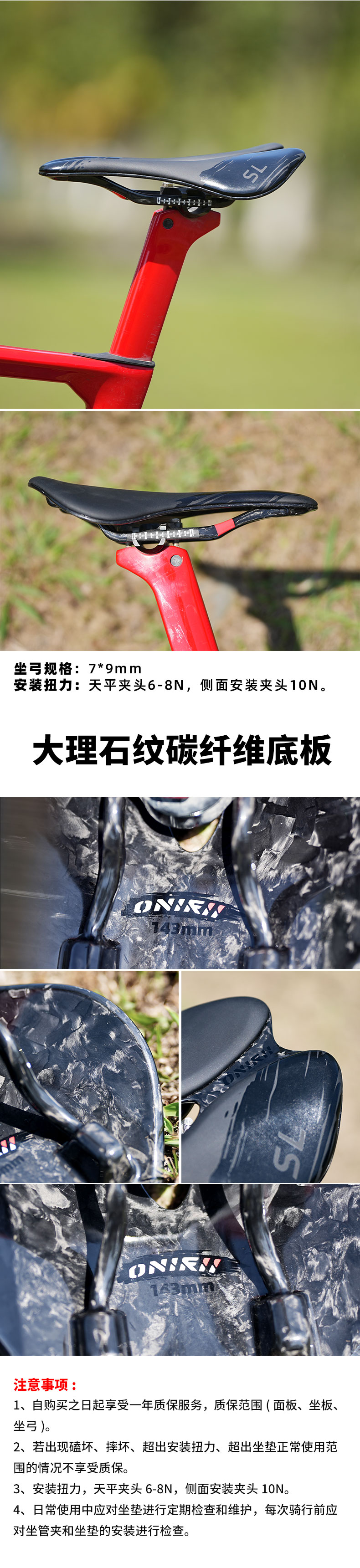 2、若出现磕坏、摔坏、超出安装扭力、超出坐垫正常使用范围的情况不享受质保。