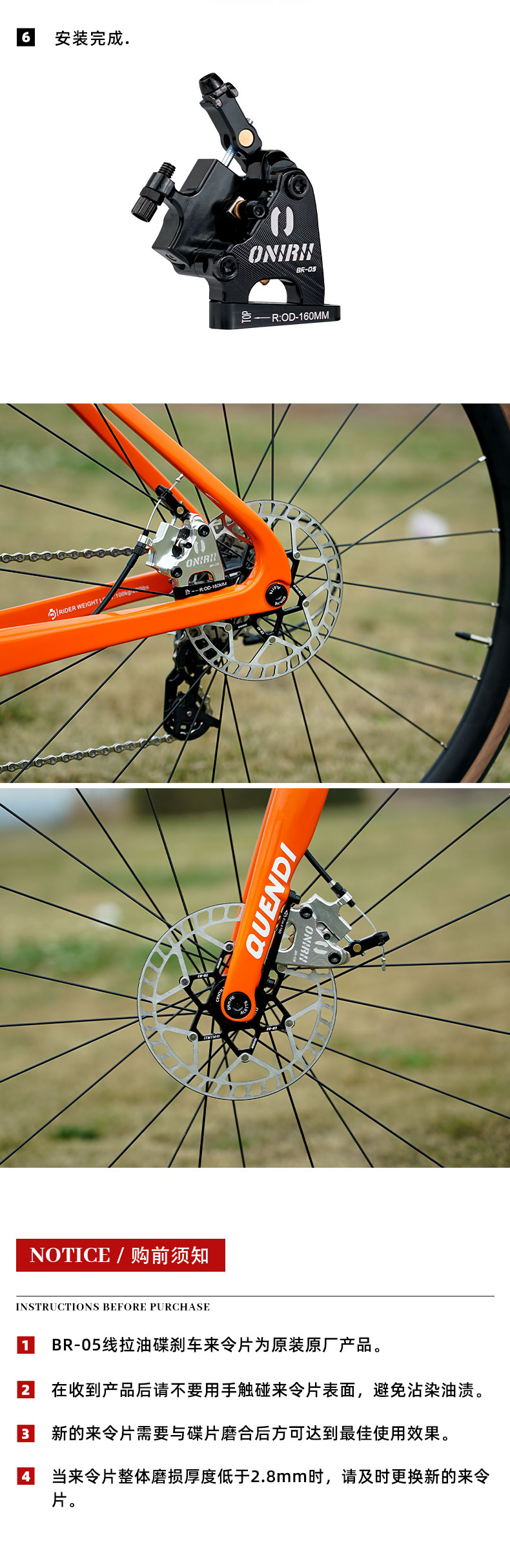 3、新的来令片需要与碟片磨合后方可达到最佳使用效果。