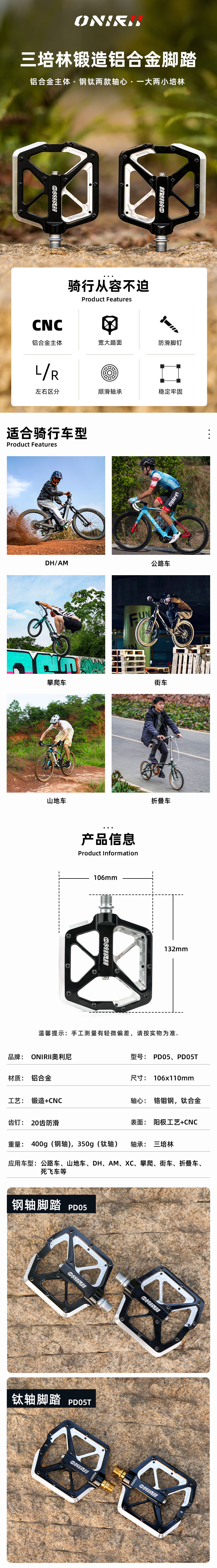 • 山地公路车CNC三培林锻造铝合金脚踏