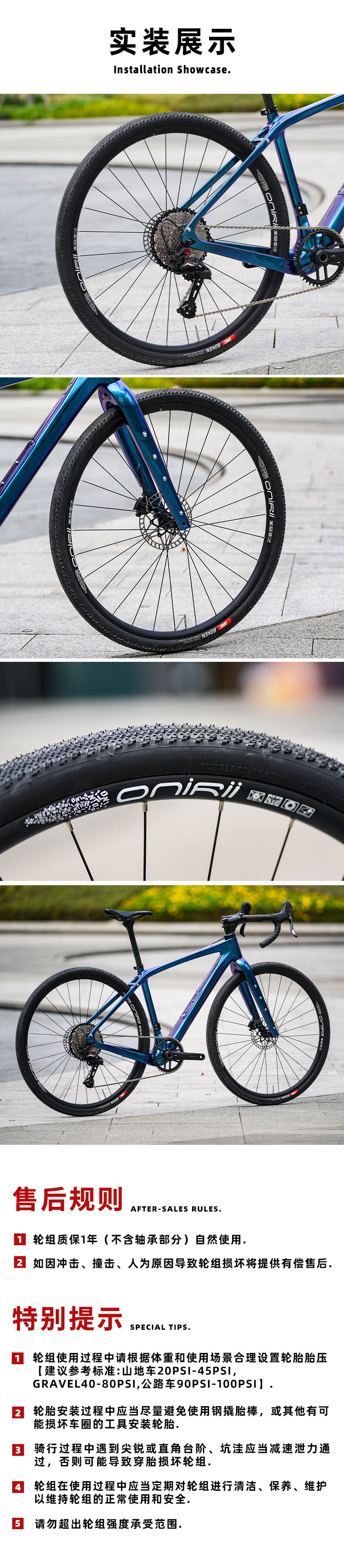 1、轮组使用过程中请根据体重和使用场景合理设置轮胎胎压。