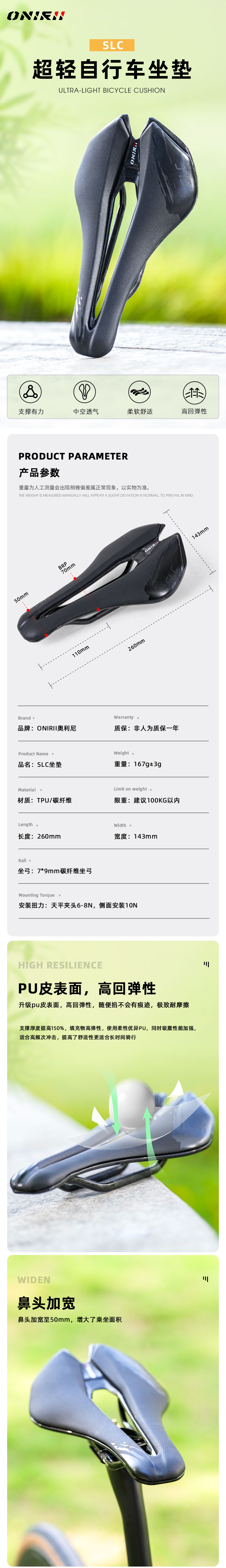 • SLC 超轻自行车坐垫